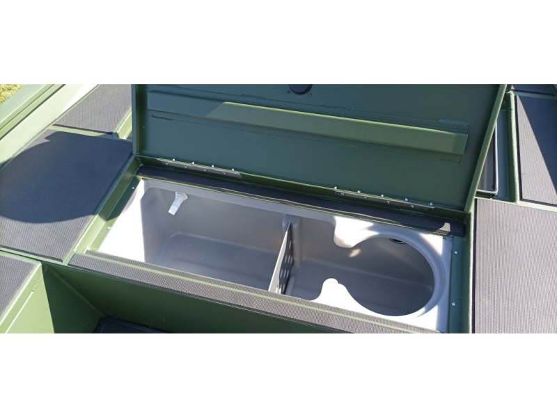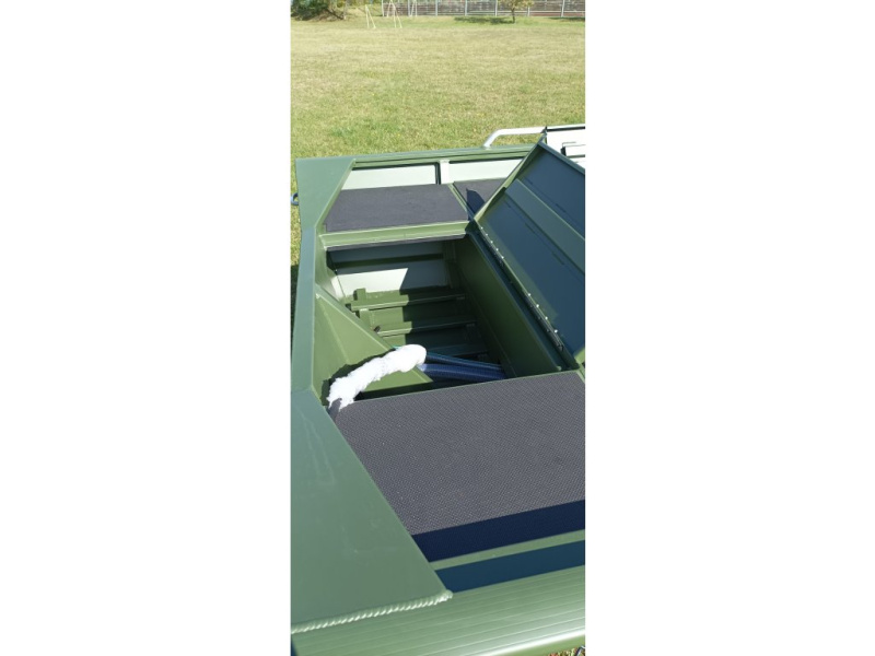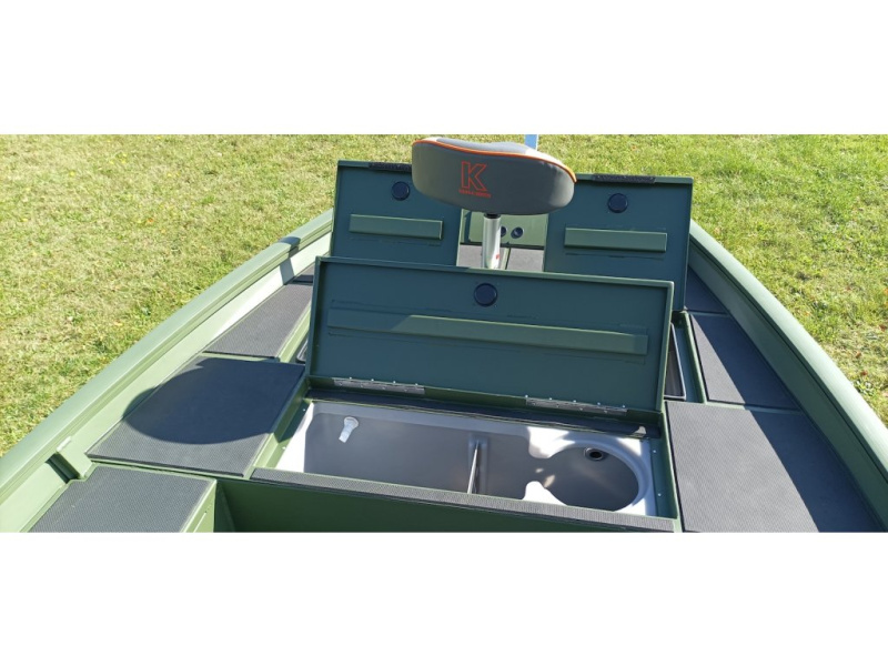 Hliníkový motorový člun Kimple JON 4920 SE LAVEX - Rozšířené provedení verze SC s živou nádrží a bočním boxem pro pruty.